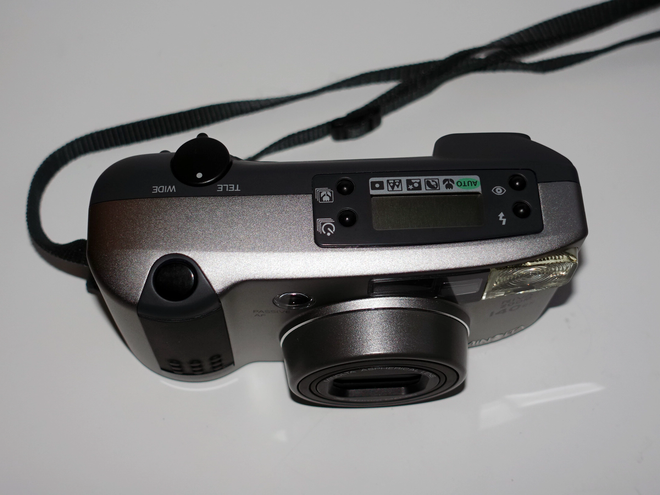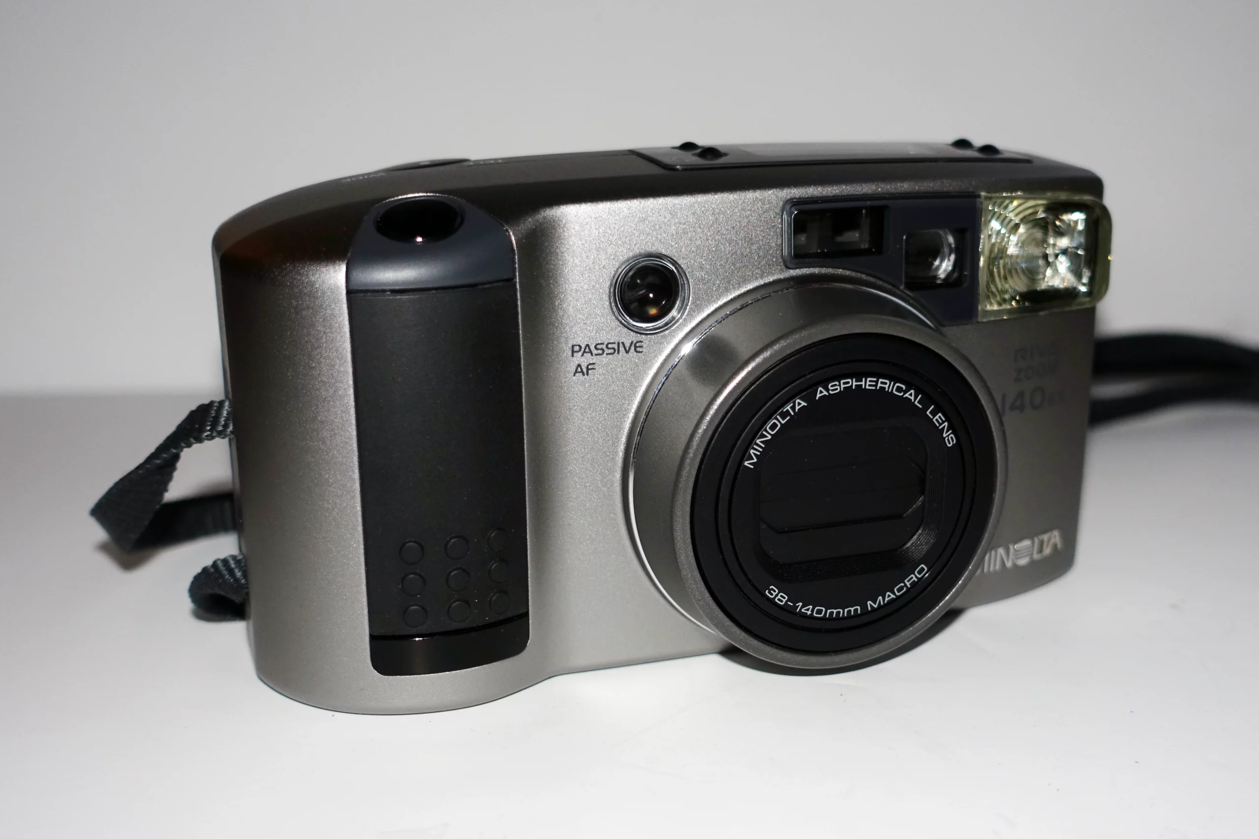 Die Minolta Riva Zoom 140 EX ist eine hochwertige analoge 35mm Kompaktkamera mit starkem 38–140mm Zoomobjektiv. Sie verbindet einfache Bedienung mit vielseitiger Brennweite – ideal für Alltag, Reisen und spontane Momente.